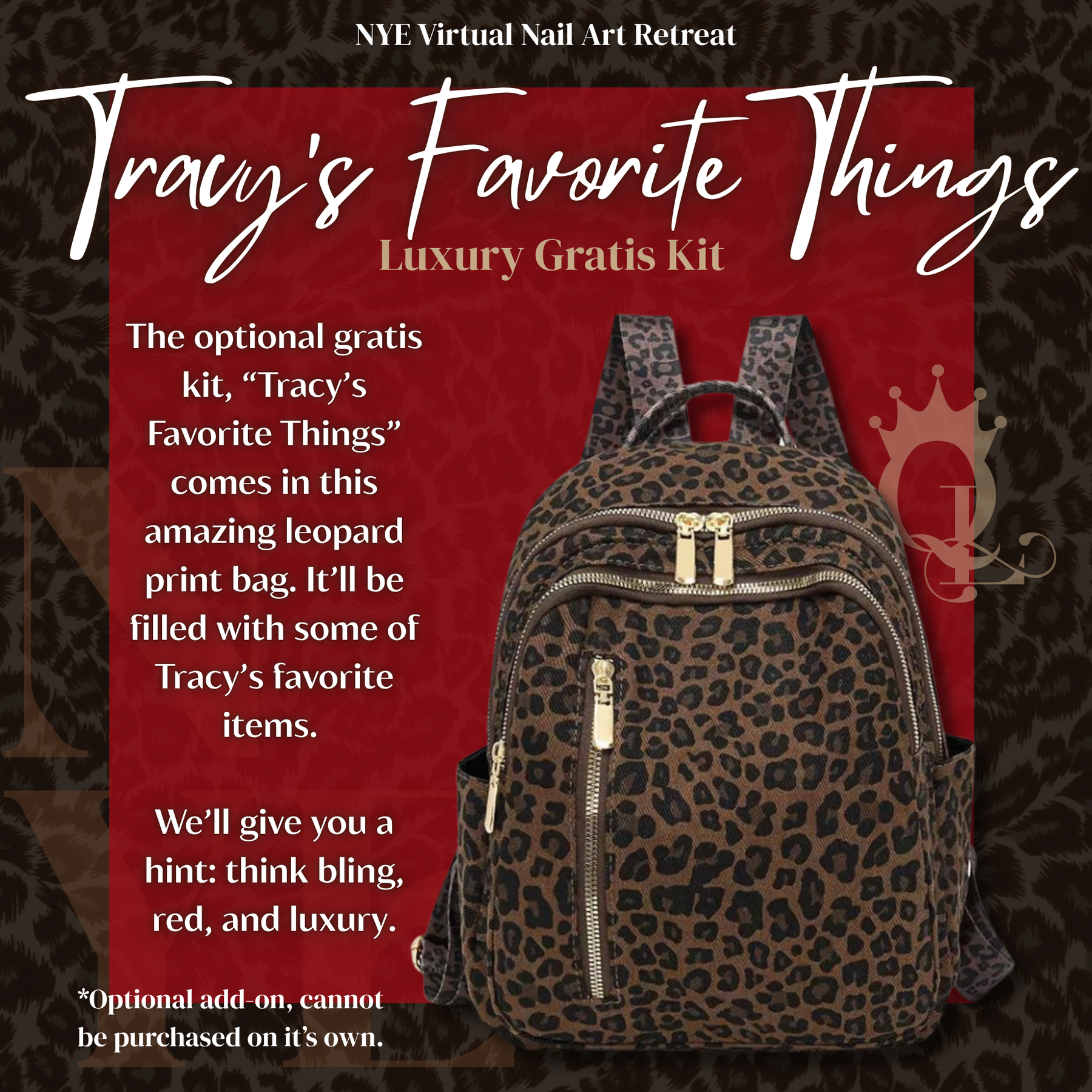 Early Access guests will have the opportunity to secure our Luxury Gratis Kit, curated exclusively for this year’s event as, “Tracy’s Favorite Things.” We'll give you a hint: leopard, bling, things that are red. LOL. This kit is optional, and quantities are limited. They will sell out quickly and they can remain shipping until December 22nd or until they're gone.